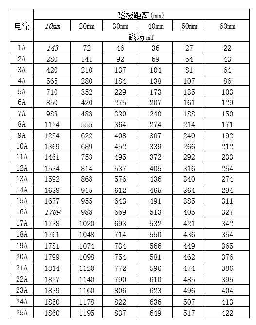 3.5、剩磁:H ≤10mT (磁极距离10mm)